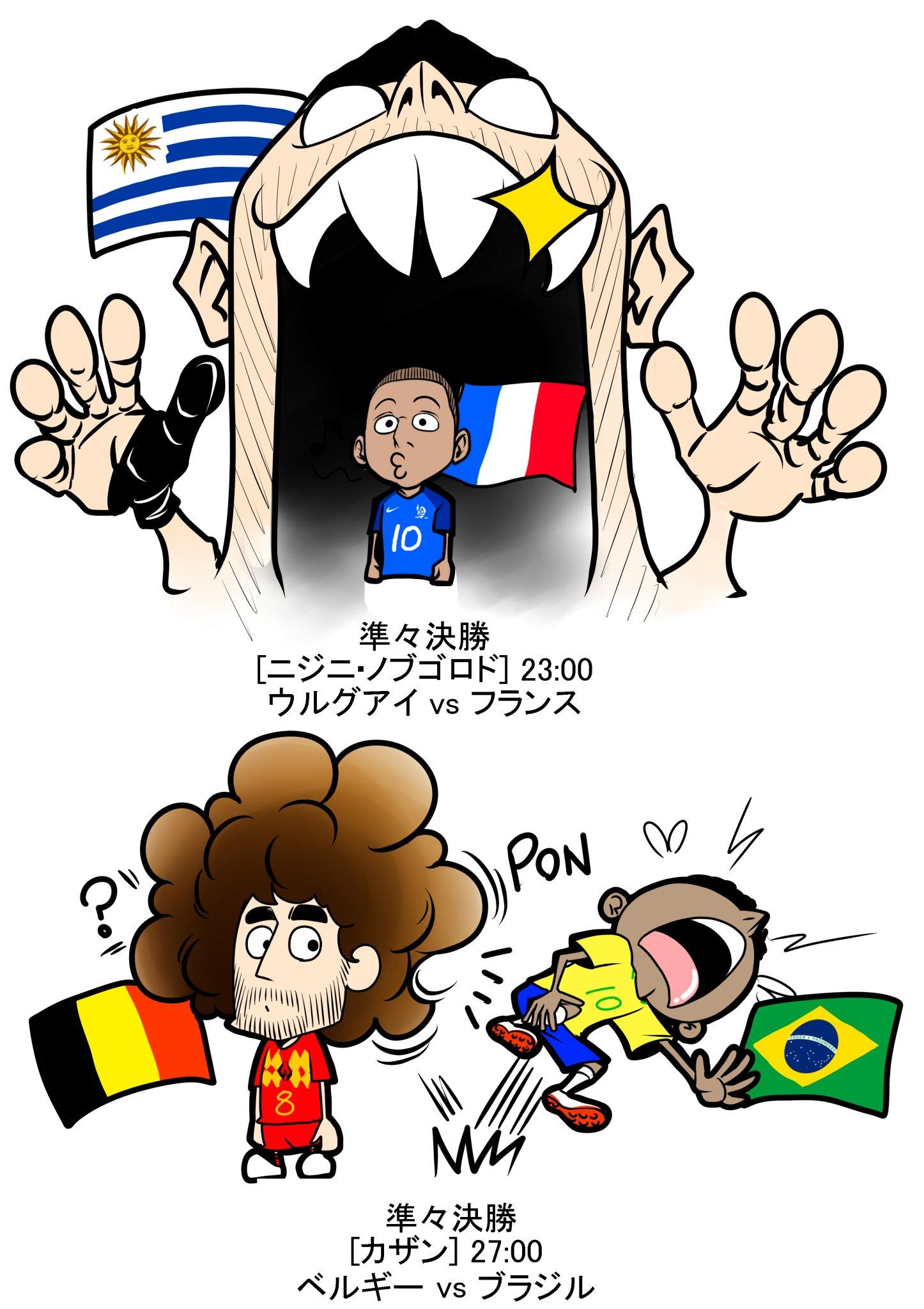 Russia World Cup こんにちは、Kei(s21cd4869)です。 大会は日目。今日から準々決勝が始まった。 Russia World Cup // 前半 ウルグアイは、442 決勝トーナメント1回戦のポルトガル戦で負傷したカバーニがこのゲームを欠場。代わって、ストゥアニがスタメン。 フランスは、433 左サイドに入っていたチャンネル登録&コメントをよろしくお願いいたします!スコアウルグアイ代表 0-2 フランス代表得点者0-1 40分 ラファエル・ヴァラン